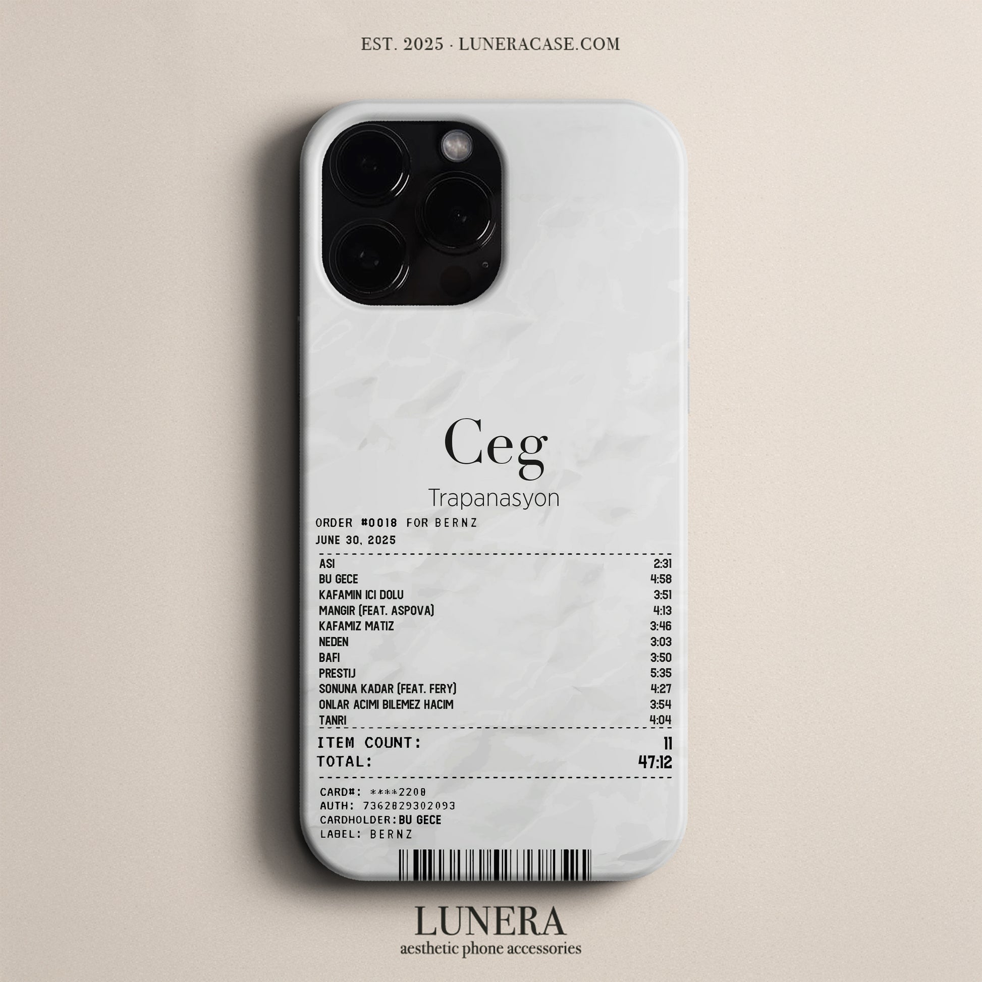 Uzun zamandır bu kadar kaliteli bir telefon kılıfı kullanmamıştım. Hem cihazı mükemmel koruyor hem de elde çok zarif duruyor. Baskı kalitesi inanılmaz canlı, kenarları tam oturuyor. Kargo hızlı, paketleme özenliydi. Gerçekten premium bir marka hissi veriyor — Lunera’yı herkese tavsiye ederim. 💎